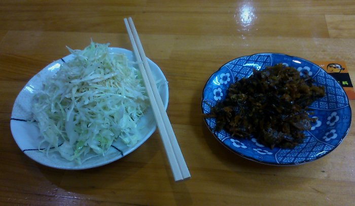 高菜とキャベツが、おかわり自由でお得感が高いです。
