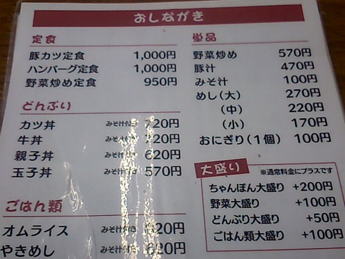 メニューを見ると、豚カツやハンバーグ定食、牛丼や親子丼もあります。