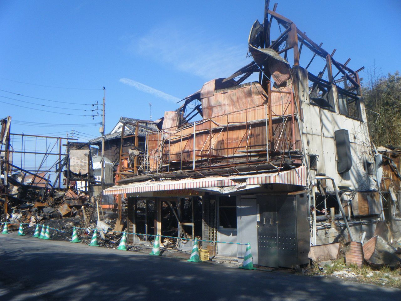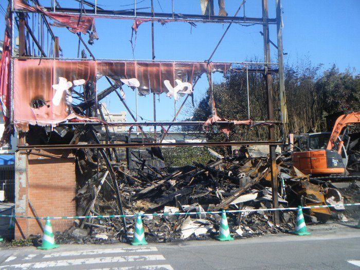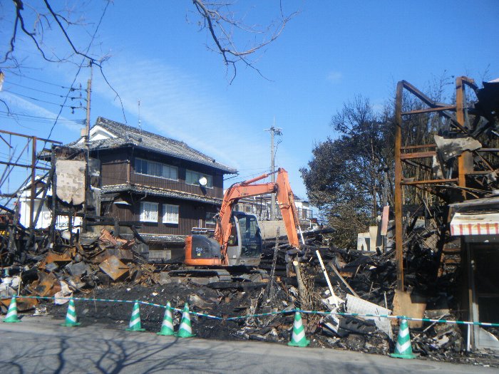 火災の翌日から、重機が入り後片付けが始まりました。