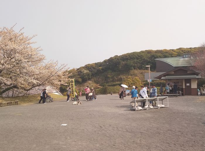 山の方に向かって10分くらい走ると、広い駐車場があります。
