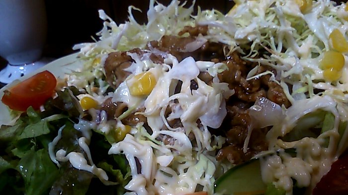 そしてシシリアンライスですが、ごはんと牛肉の甘いタレとサラダが