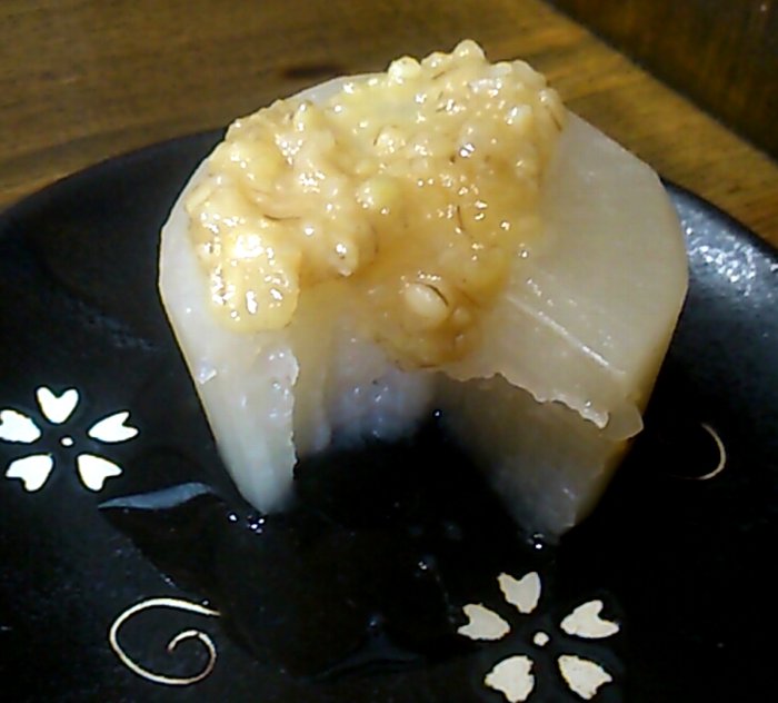 今日は、たまたまこの大根の煮付けをサービスしてもらいました。