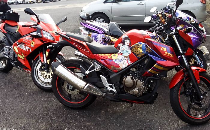 痛車ならぬ痛単車(イタンシャ)が停まっています。