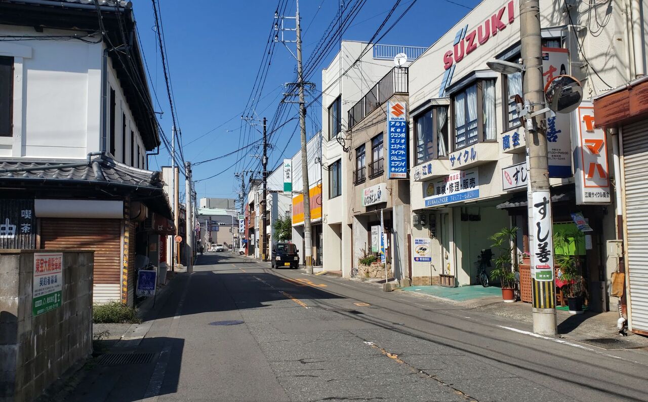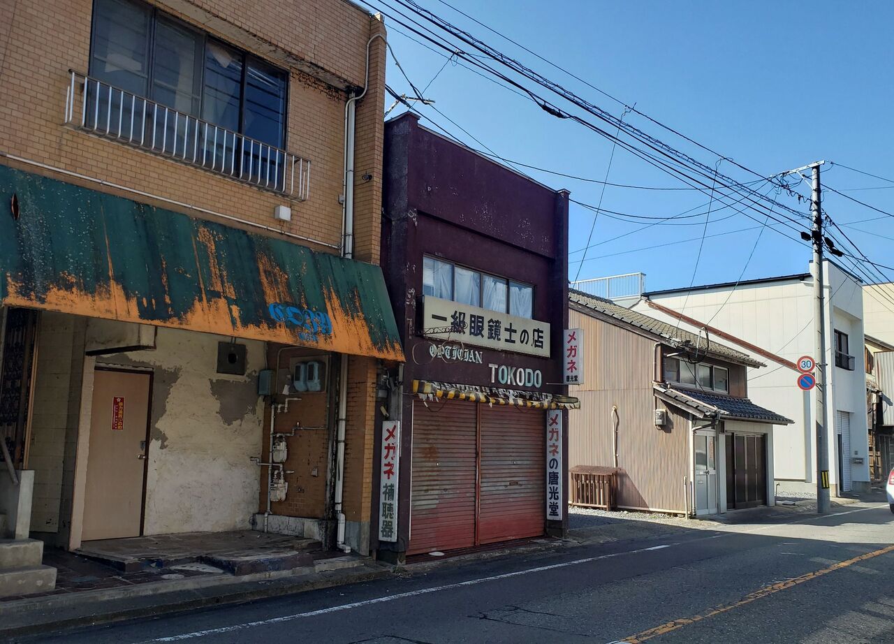 駅をちょっと離れると昔ながらの店舗が残っている、