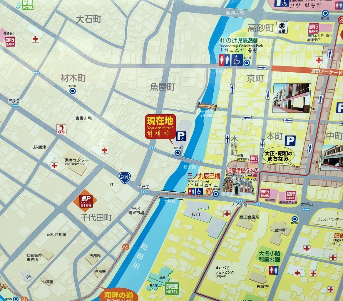跡地は「唐津第一病院」。最寄駅はJR唐津線唐津駅。