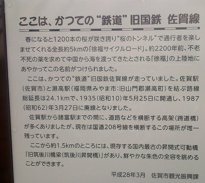 そのちょっと先は、高架橋ですが手前に旧佐賀線の説明板が、
